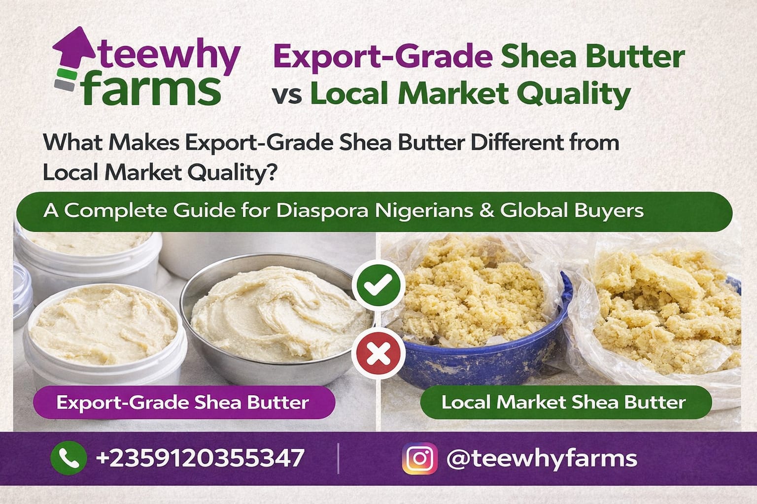 At Teewhy Farms, we specialize in producing and supplying export-ready shea butter for diaspora entrepreneurs and global companies who cannot afford inconsistency.